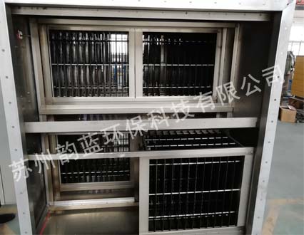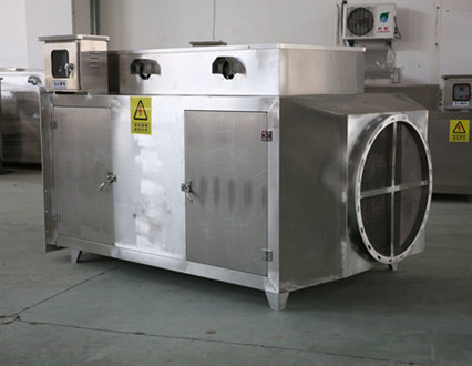 含油煙顆粒物的廢氣吸入高低壓板式末端廢氣處理設(shè)備后,其中部分較大的有霧滴、油污顆粒在均流板上由于機(jī)械碰撞、阻留而被捕集。
